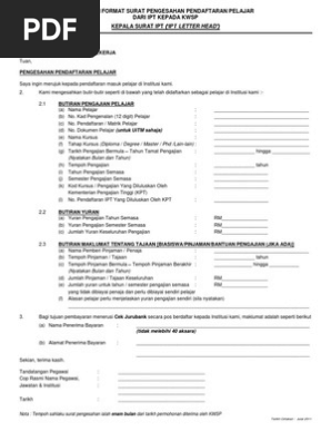 Contoh Format Surat Pengesahan Pendaftaran Pelajar Dari Ipt Pdf